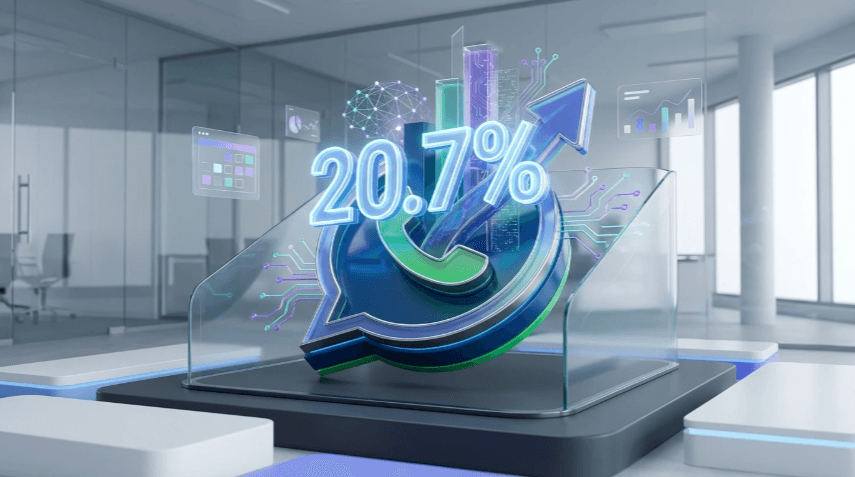 Visualizing the impressive 20.7% annual growth rate of WhatsApp Business API adoption, highlighting its significant upward trajectory in the business landscape.