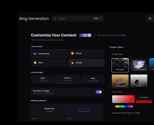○ AI Blog Topic Generator that surfaces what your audience is actually searching for