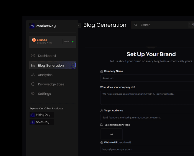 Both platforms offer some form of brand voice. MarketDay goes deeper by letting you train it specifically on your tone, so every blog article it produces reads like your team wrote it rather than a general AI model. For brands that publish regularly, that consistency is the difference between a recognizable voice and a forgettable one.