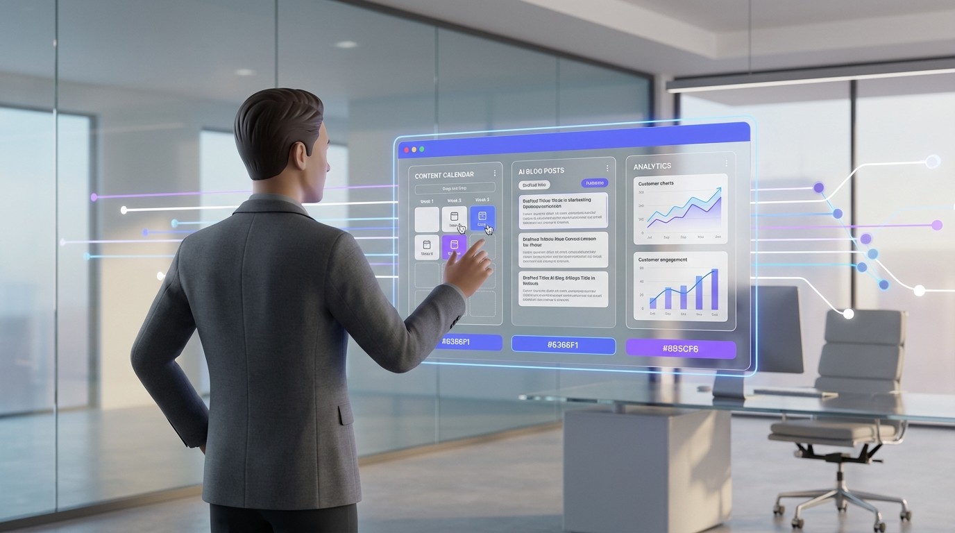 Pioneering the future: A confident founder leverages advanced AI insights to drive innovation and strategy.